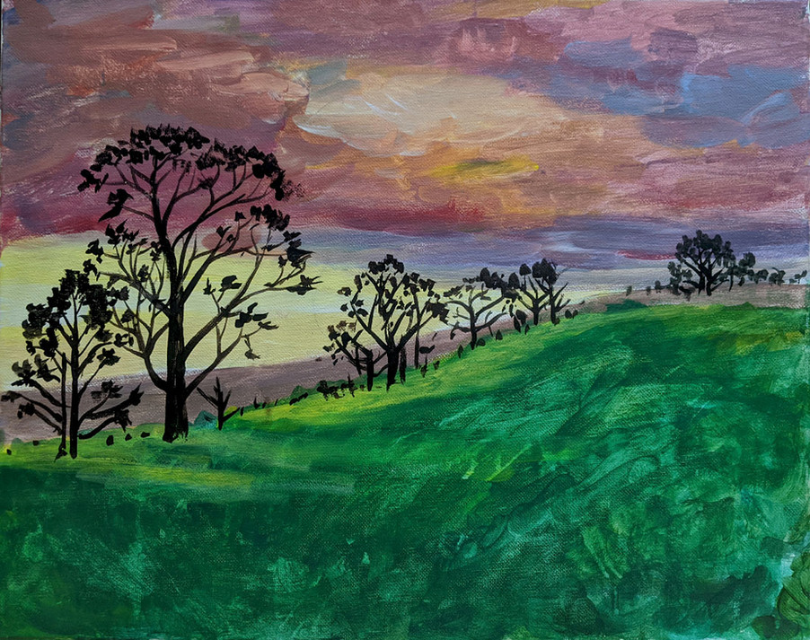 To see details (like price and size) for the paintings above, hover or click to expand. Press the arrow to see the following pieces.